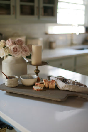 The perfect addition to any kitchen! The Harvest Cutting Board is made of solid wood. Perfect for cutting bread, fruits, and vegetables.