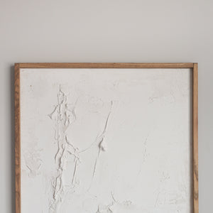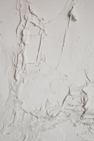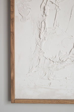 This piece was painted with a variety of textural techniques in a soft white tone. Each painting is handcrafted and sculpted with care. All pieces are minimal, sophisticated and one of a kind.
