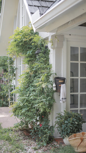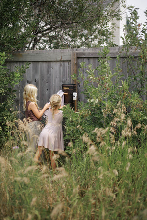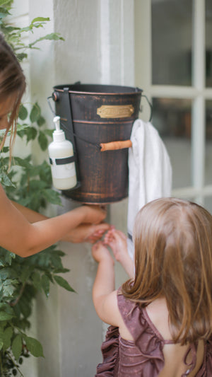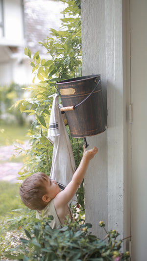 The Prairie Wash Bucket is reminiscent of a handwashing station that Karina grew up with. Loving the simple functionality of it so much, she worked tirelessly to have one handcrafted exclusively for Primrose. This outdoor handwashing station is ideal for cleaning up before kids come indoors or after time spent gardening. It would also be perfect for camping!