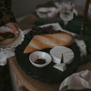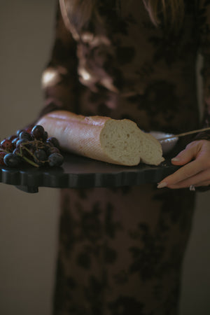 Handcrafted from sapele wood with its rich, warm tones, this oval riser features soft scalloped edging that adds a touch of romance and old-world charm. A piece designed to elevate any table — perfect for charcuterie, desserts, candles, or styled everyday display.