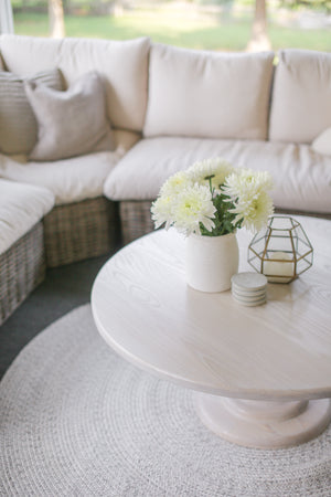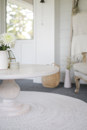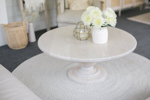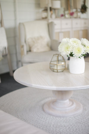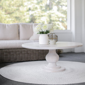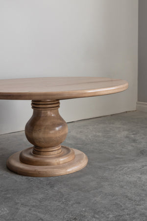 This hand crafted, solid wood coffee table has a thick hand turned balustrade base.