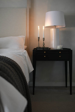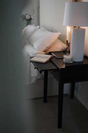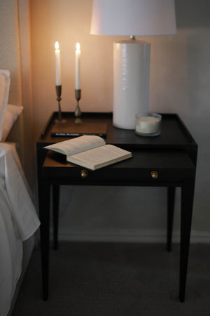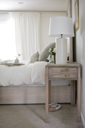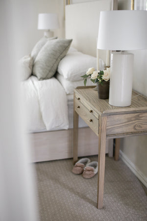 This Fairlight Nightstand with a writing drawer is both functional and convenient! Simply pull out the flat surface drawer to extend the surface space. The clean Scandinavian inspired design of the Fairlight Collection keep this piece simple and classic.