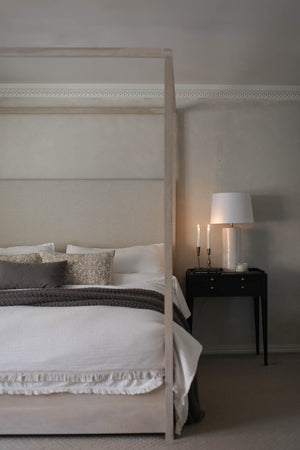 Showcasing rich wood grains with classic lines, the Remington Canopy Bed offerseffortless elegance and practical luxury. The canopy bed mixes beautifully finished solid hardwood and exquisite fabric creating an immediate statement in the bedroom.