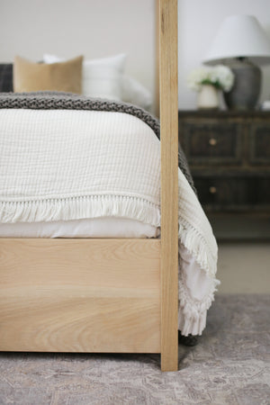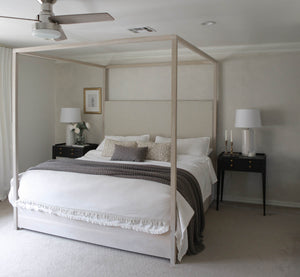 Showcasing rich wood grains with classic lines, the Remington Canopy Bed offers effortless elegance and practical luxury. The canopy bed mixes beautifully finished solid hardwood and exquisite fabric creating an immediate statement in the bedroom.
