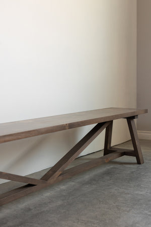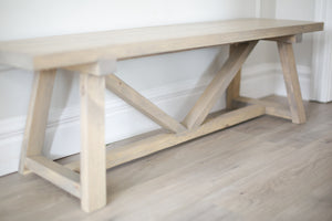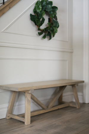 The Riley Bench is a country craft classic! High stance construction offers a light and bright approach for maximum functionality without adding bulk. The perfect entryway piece!