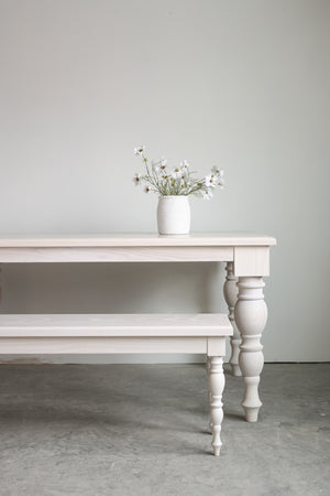 The Audrey bench is elegant and timeless. It pairs perfectly with our Audrey Dining Table, linked below.