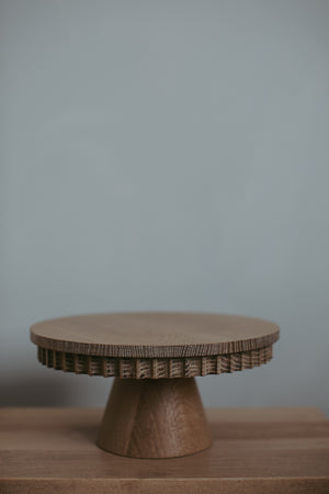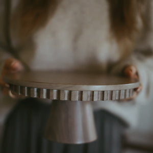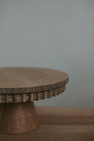 This heirloom cake stand is crafted with precision and care. It features a hand-spun round base and detailed hand-fluting. Made from solid white oak, it is a timeless piece that will please for generations to come.