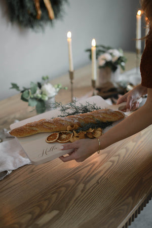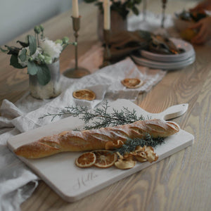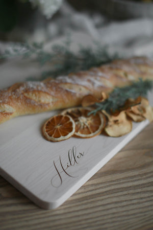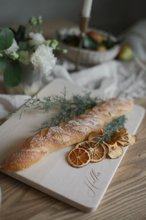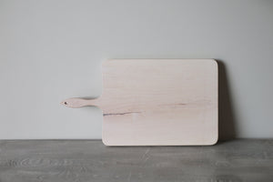 A beautiful piece handcrafted in solid maple wood. Can be used as a décor piece or a functional serving board. Email the engraved name for your board to engraving@primroselifestyle.com