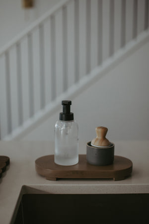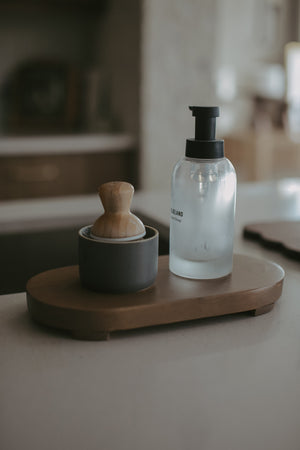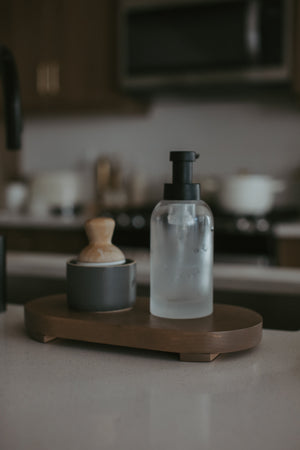 The Nova Riser offers a sophisticated and functional option for storing soap in your bathroom or next to your kitchen sink. Its sleek oval shape and minimalist design make it a seamless fit for any room.
