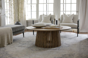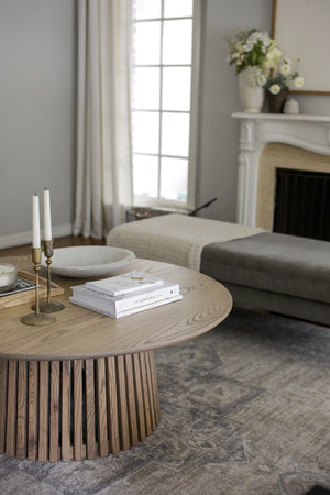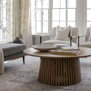 The Manhattan Coffee Table, featuring a slatted, flared base, is a statement living room piece with the versatility to fit into most contemporary or traditional styled interiors.