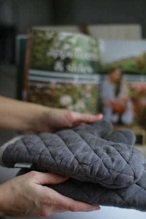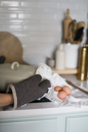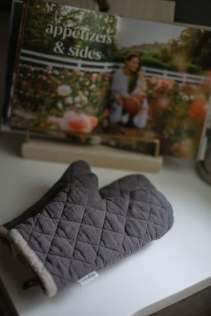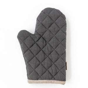 Add sophistication and style to the kitchen with this linen oven mitt.