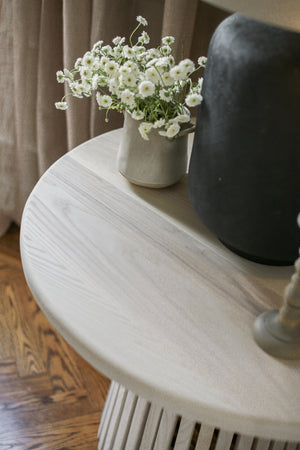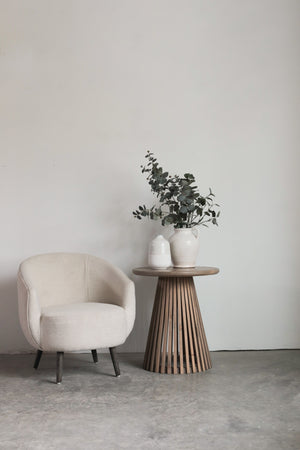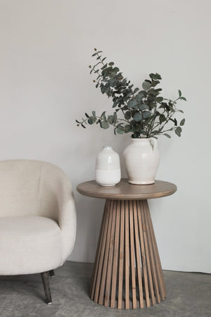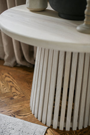 The Manhattan Accent Table, featuring a slatted, flared base, is a statement piece you can display in any corner of your home with the versatility to fit into most contemporary or traditional styled interiors.