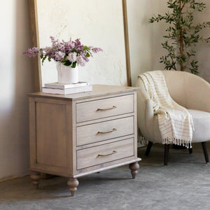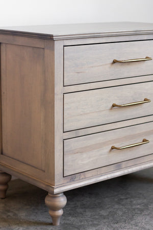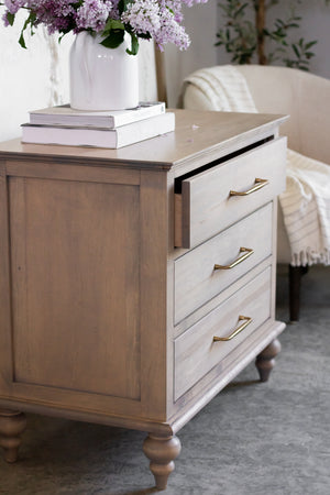 A Classic design, featuring hints of modern elegance and plenty of storage. This handcrafted solid wood nightstand is sure to become a timeless piece. The drawers are built in a solid wood on wood style, so they are sturdy and will hold up for generations.