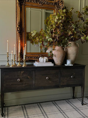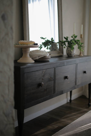 The Goldie Console is a versatile and beautifully crafted piece made of solid pine. This console offers both style and practicality. Its elegant design will complement any room, making it a great addition to your home.