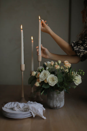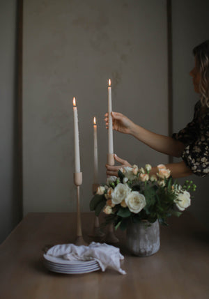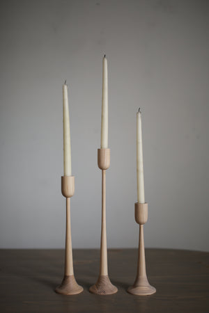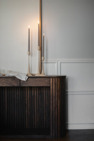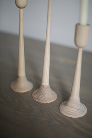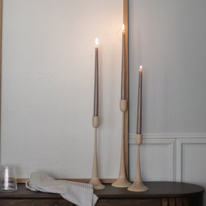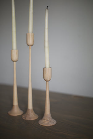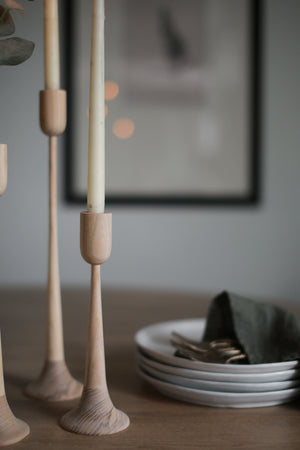 Elevate your home with Isabella Candle Holders - a timeless and elegant set of 3 crafted from solid ash. Their delicate design, simplicity, and beauty make for a subtle yet stunning decor for your console or dining room table. Perfect for any home looking for a touch of sophistication.